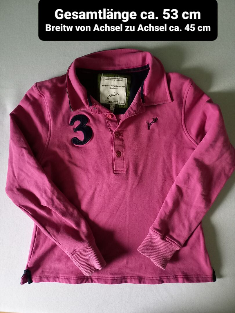 Sehr gut erhaltenes, pinkfarbenes Langarm-Polo in Größe M. Keine Löcher, Flecken o. Ä. Maße bitte dem Foto entnehmen.