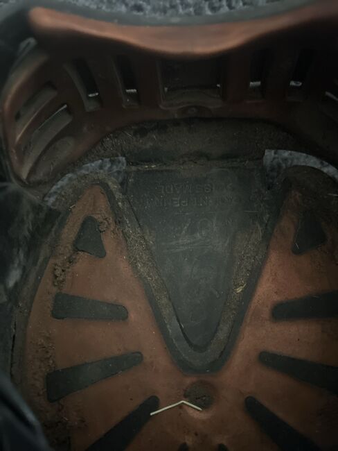 Zu beachten ist, dass das Innenpolster fehlt - das kann aber bei Bedarf ersetzt werden. Der Rest des Schuhs zeigt normale Gebrauchsspuren, ist aber noch gut verwendbar.
