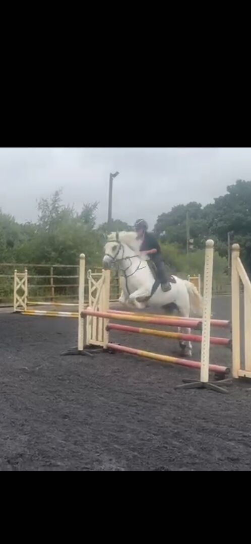 14'1 5 steigendes 6 jähriges Connemara Pony. arbeitet gut in der Schule und kommt gut voran, sie liebt es zu springen und ist mutig und kühn mit Zäunen, aber braucht mehr Ausbildung, um wirklich ihr Potenzial zu erreichen.