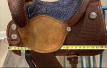 Schicker 17" Westernsattel mit hochwertiger Verarbeitung und klassischem Design. Das schöne braune Leder ist mit detailreicher Basket- und Floralpunzierung versehen und wird durch silberne Conchos stilvoll ergänzt - ein echter Hingucker!