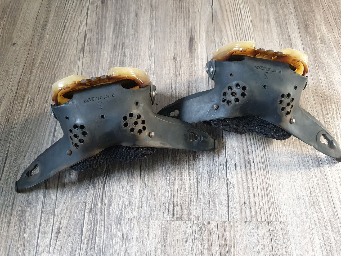 Die Hufschuhe wurden ca. 1 Jahr von einem 31 jährigen ca. 400kg schweren Pony-Mix auf den Vorderhufen hauptsächlich auf ebenem Untergrund getragen. Man erkennt zwar Gebrauchsspuren, das Profil ist aber noch sehr gut.