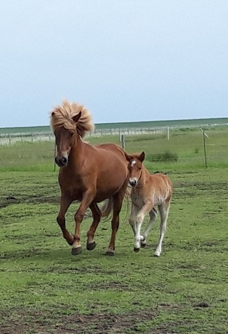 Vater: Glanni frá Austurási (ein Sohn von Stáli frá Kjarri) FIZO Elite mit 8,26 als Viergänger, darunter einer 9,5 für Tölt und 4 weiteren 9er Bewertungen