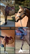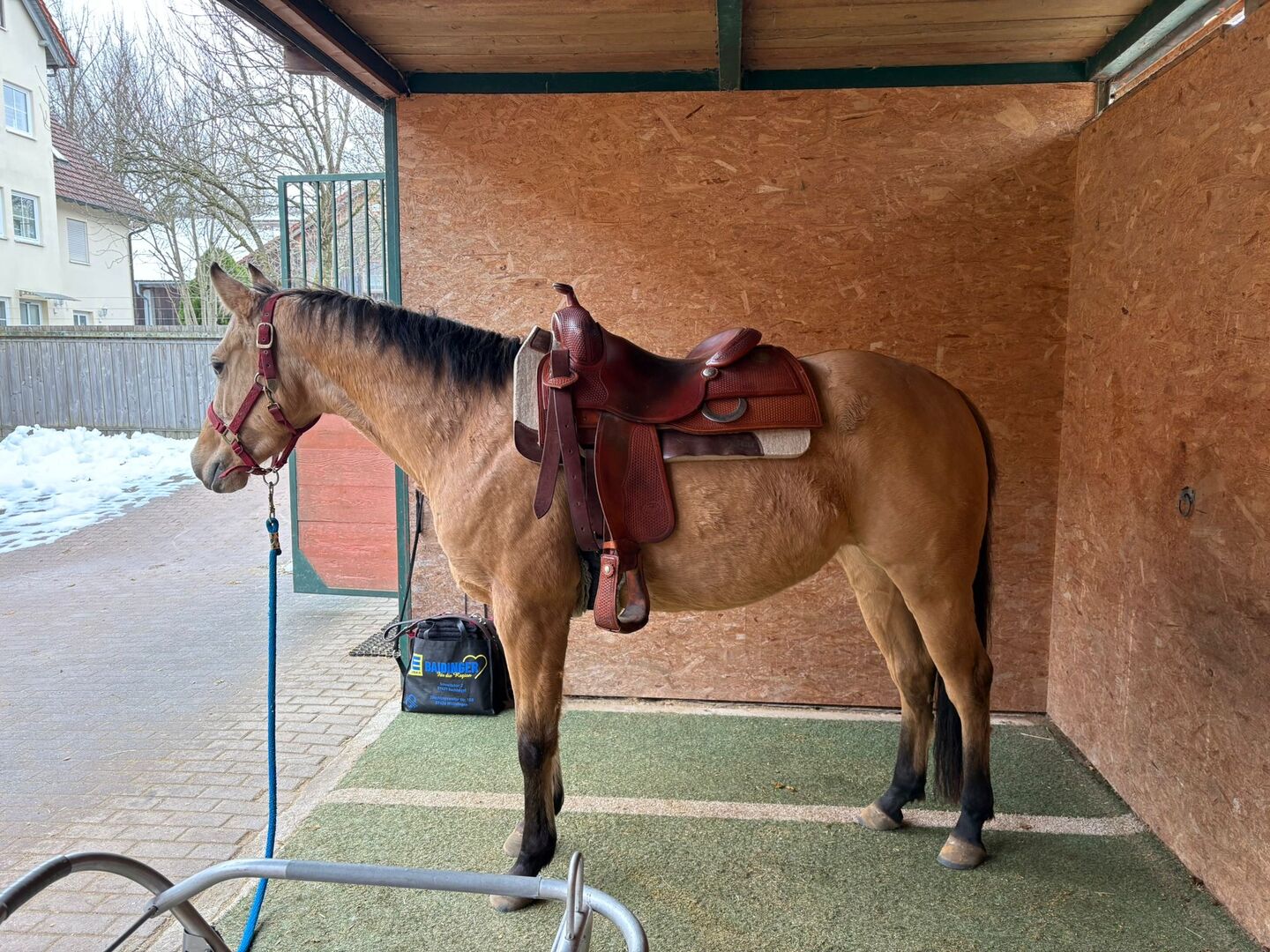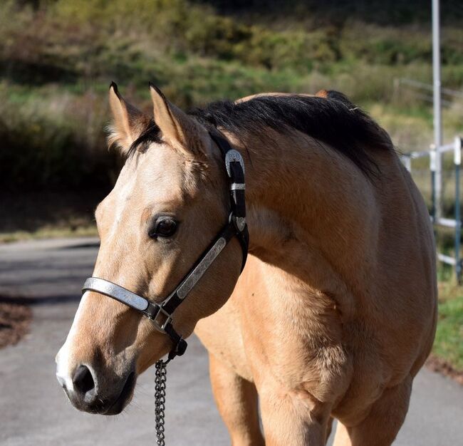 Letztes Jahr leicht gestartet, bekam nochmal Pause und wird jetzt langsam wieder gearbeitet. Chrissi wird in allen 3 Grundgangarten geritten. Regelmäßig entwurmt und geimpft und beim Hufschmied.