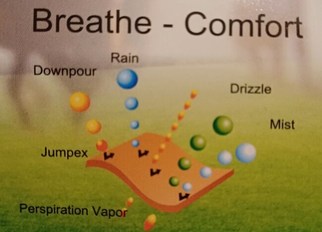 100% atmungsaktiv von -20 Grad bis + 45 Grad (siehe Infokarte),