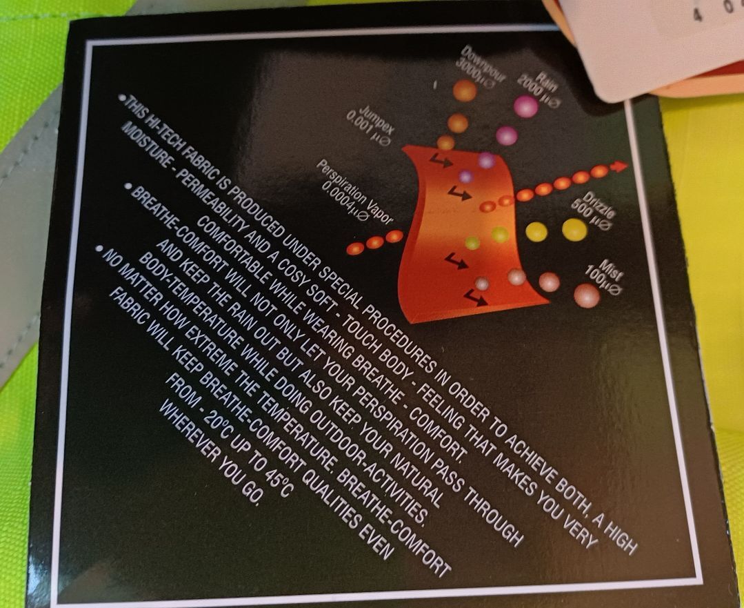 sehr atmungsaktiv laut Hersteller von -20 ° bis + 45° (siehe Etikett),