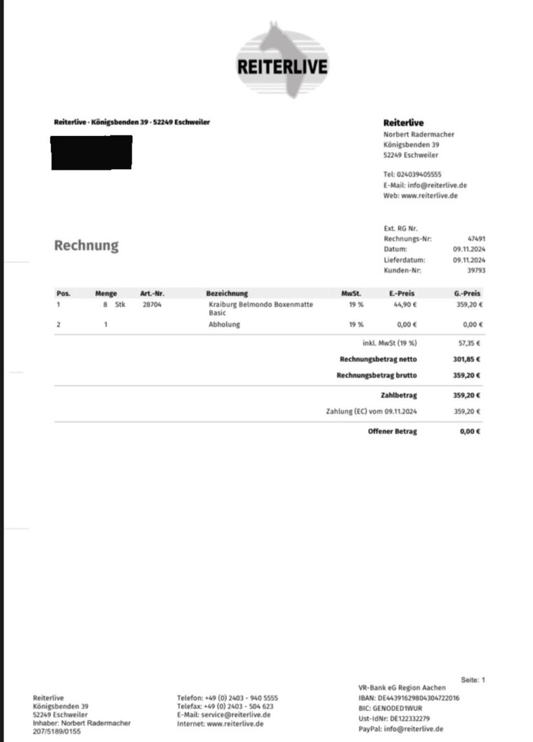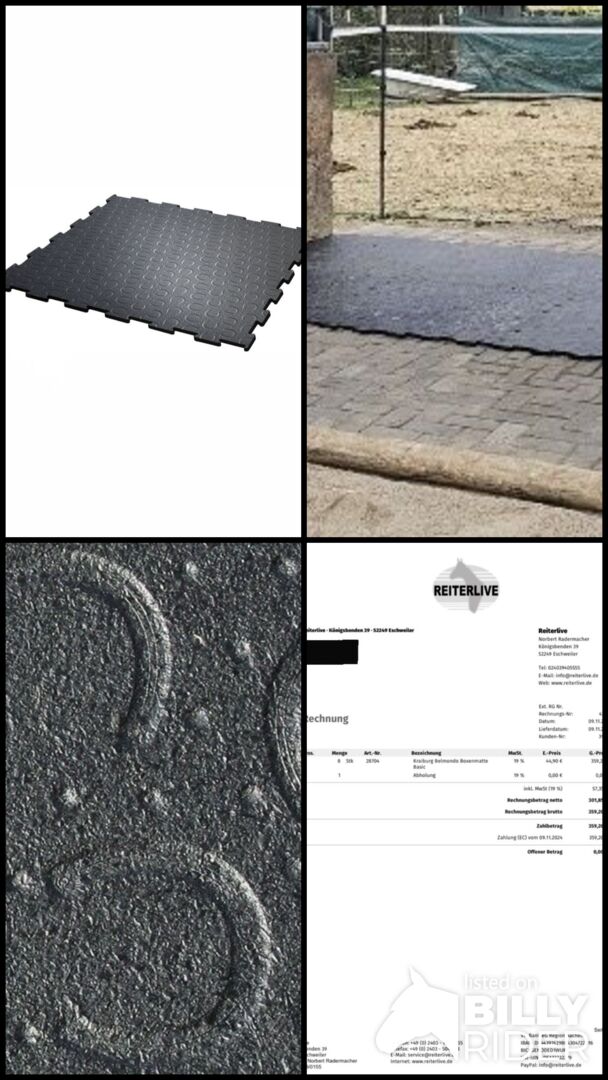 Ich verkaufe 8 Boxenmatten von Belmondo (Modell „Basic“)​. Die Matten sind ca. 1 Jahr alt, gut erhalten und voll funktionsfähig. Gekauft wurden die Matten bei Reiterlive.