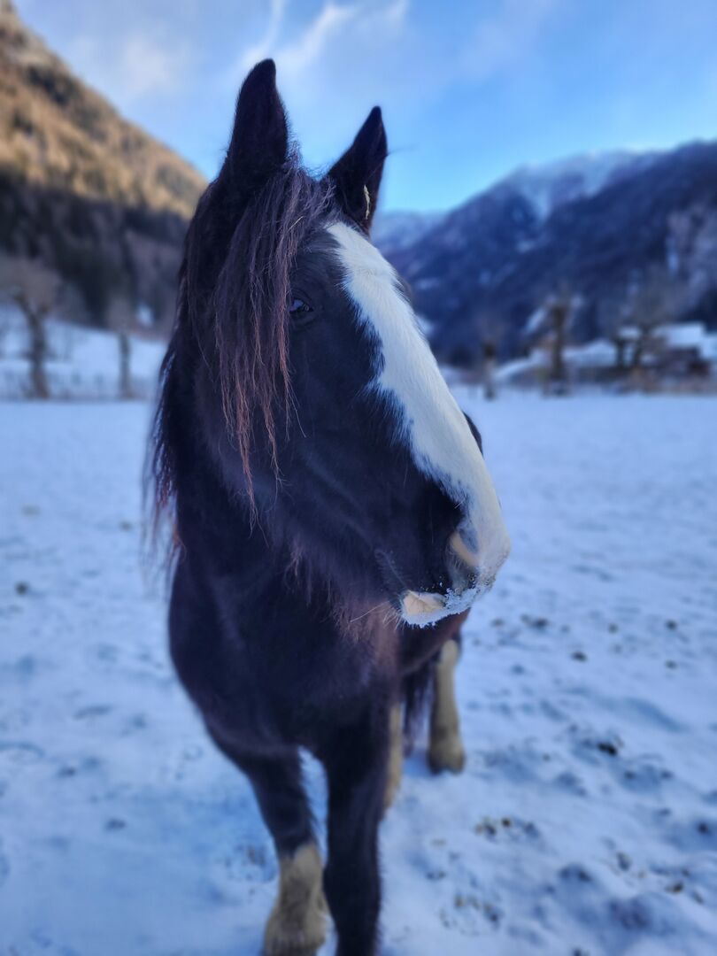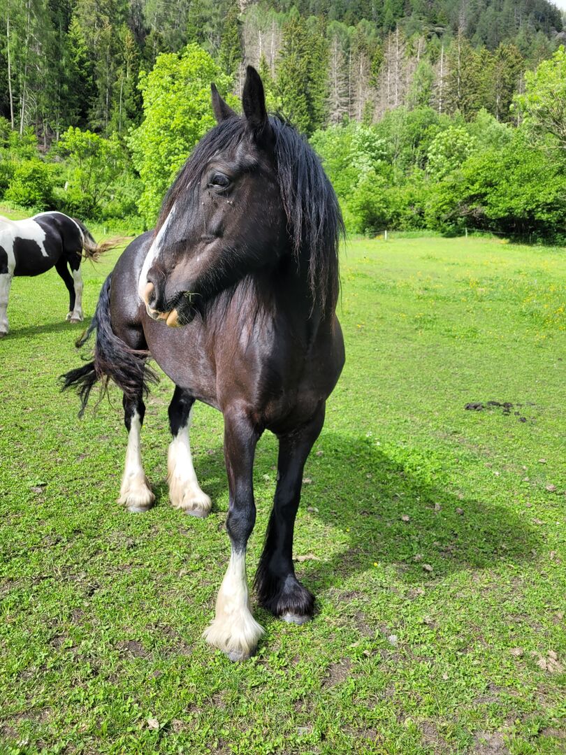 - Lebt in stabiler Herde im großen Offenstall und verbringt den Sommer derzeit auf der Alm, kann aber auf der Alm besichtigt werden.