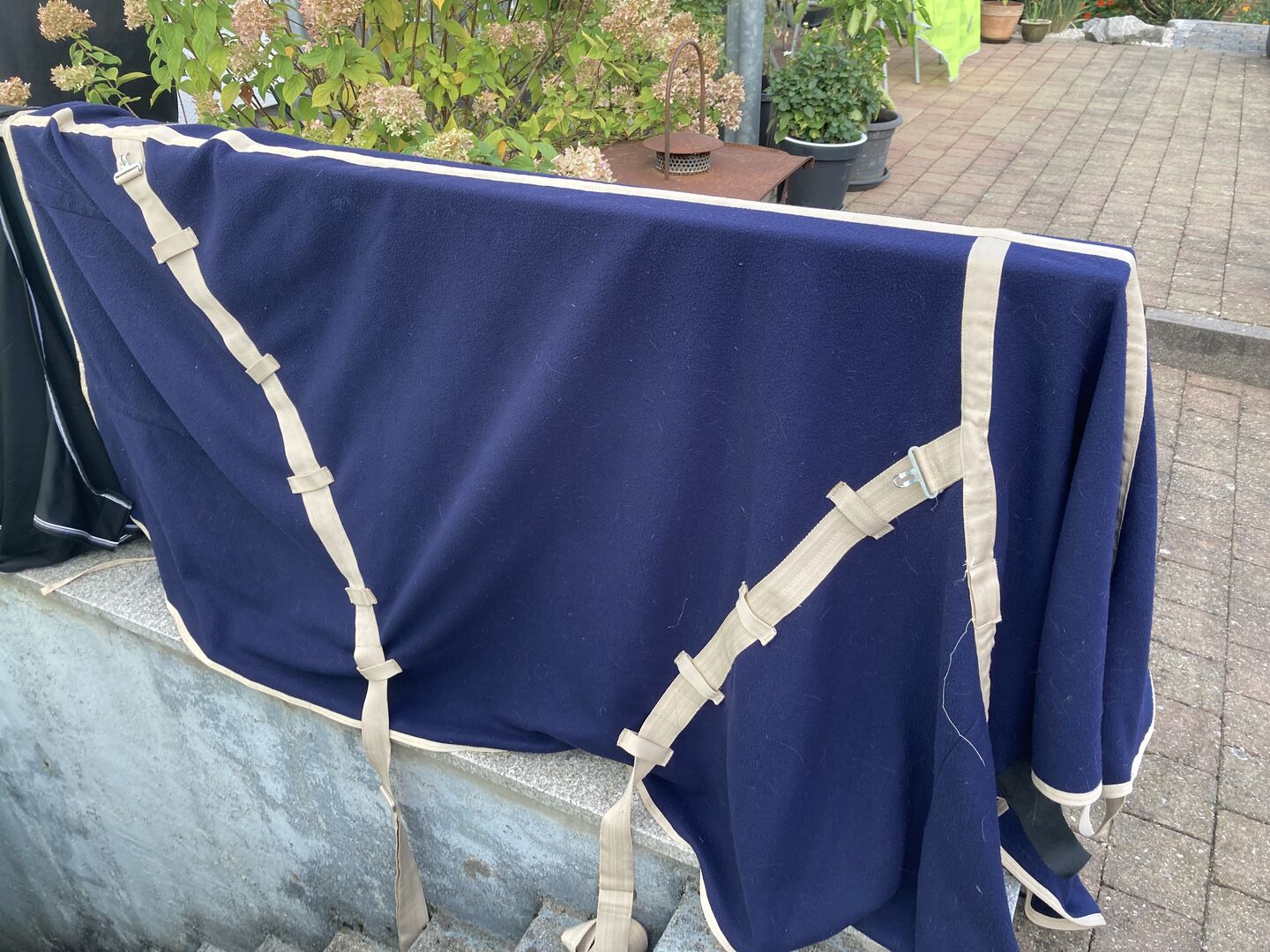 Ich verkaufe eine flauschige Fleece Abschwitzdecke mit Halsteil. Das Halsteil kann mit 2 angenähten Bändern nach unten fixiert werden wenn nicht benötigt. Die Decke ist in einem sehr guten Zustand und frisch gewaschen, allerdings nicht ganz haarfrei geworden. Größe dürfte 145cm sein. Schaut euch gerne auch meine anderen Inserate an :)