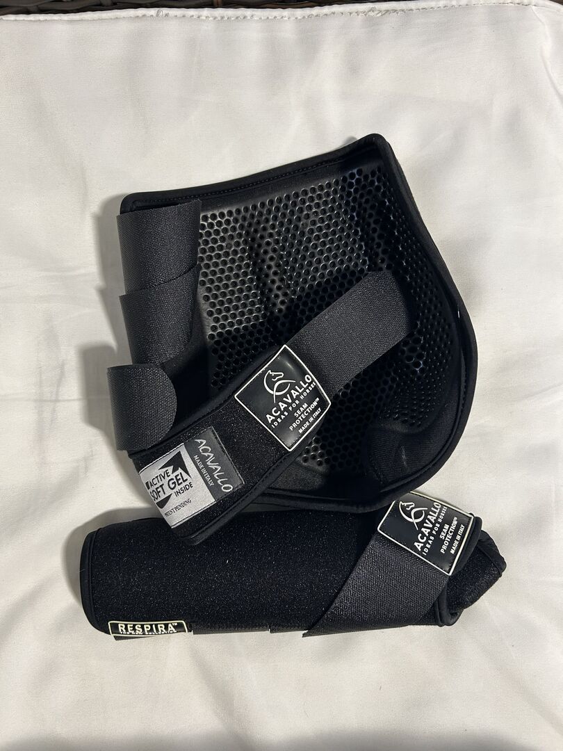 Die Gamaschen waren zu Vorführungs- und Testzwecken einmal am Pferd. Die Gamaschen sind ohne großartige Gebrauchsspuren.