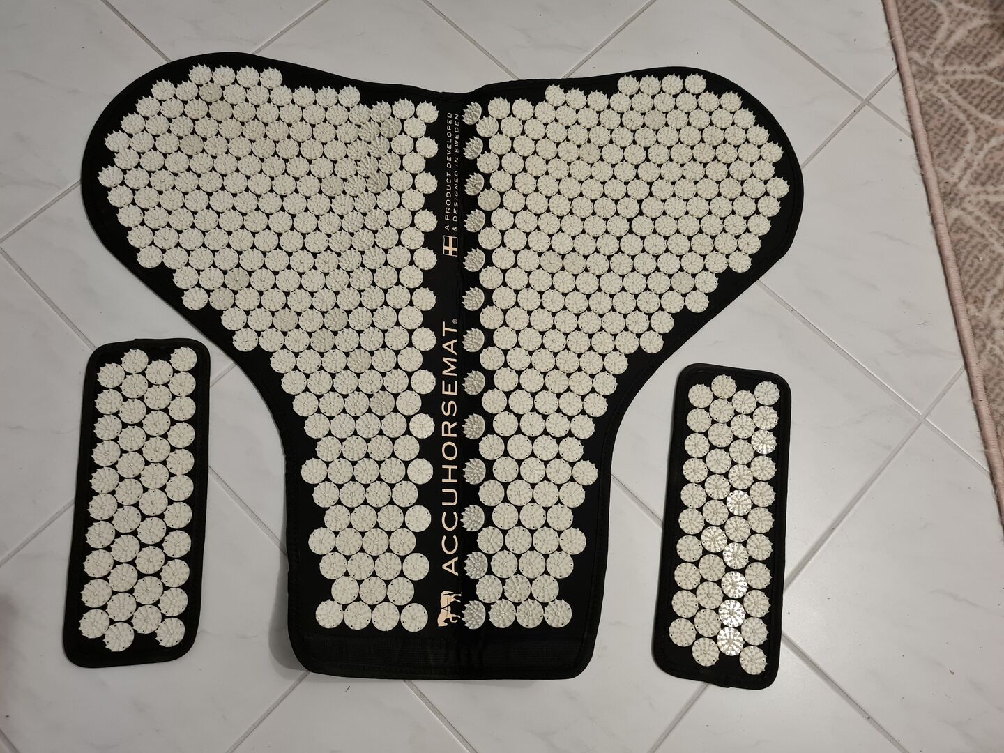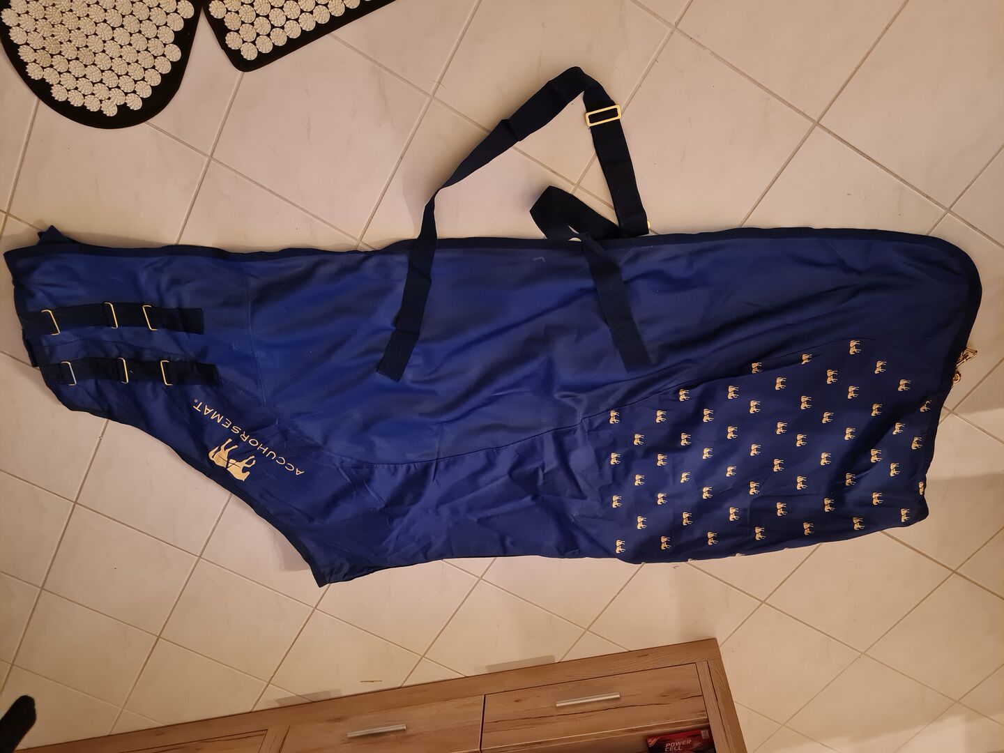 Abschwitzdecke ist atmungsaktiv und hat wie die normale Accuhorsemat drei abnehmbare Akkupressurmatten