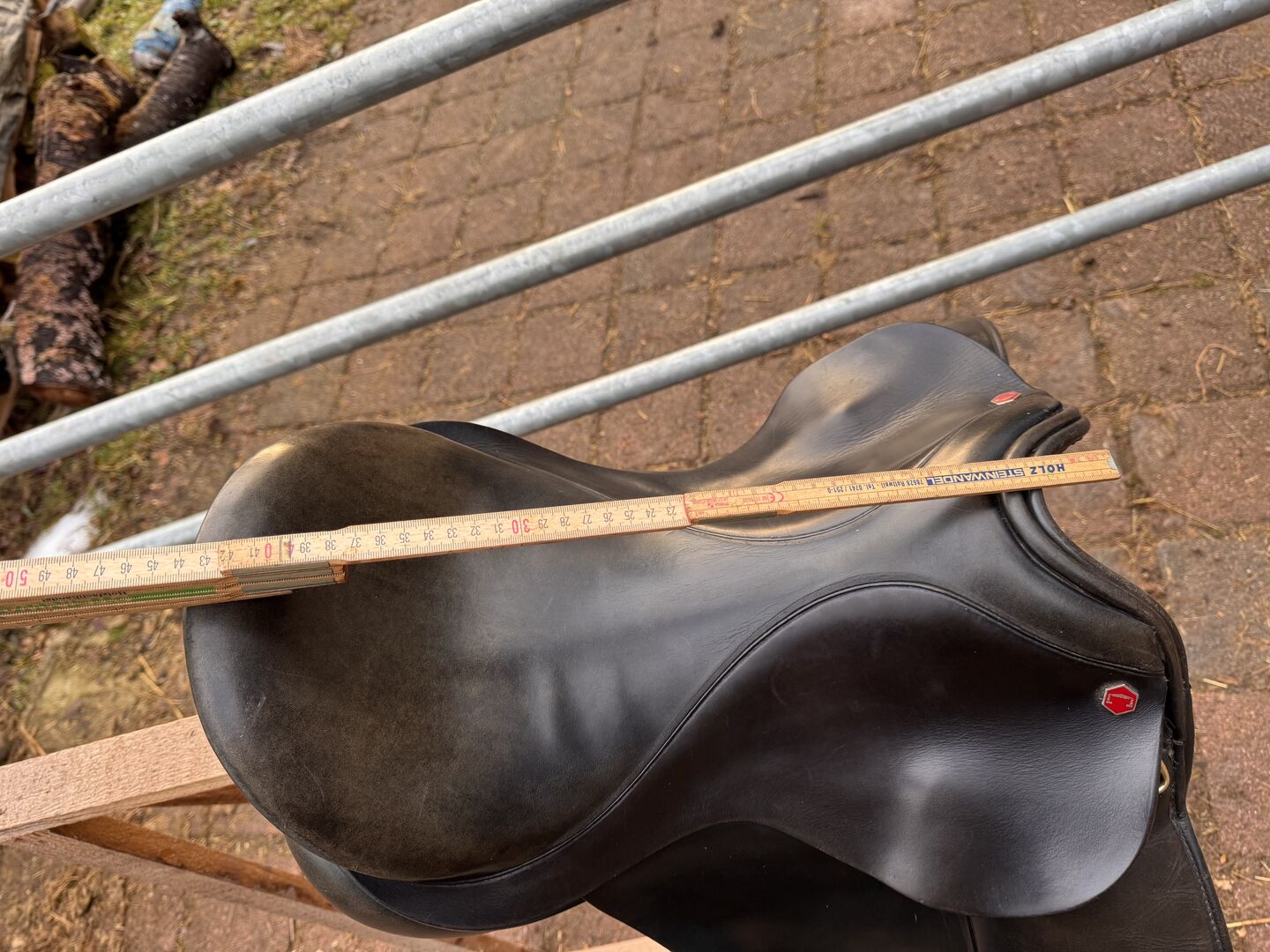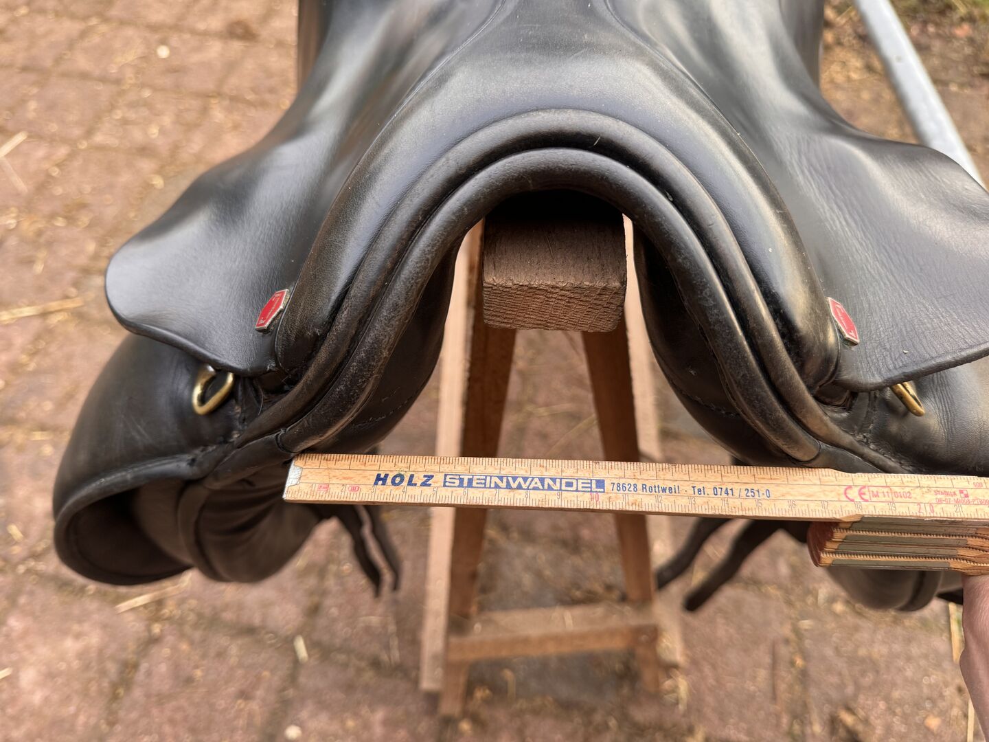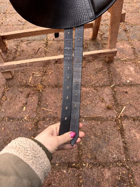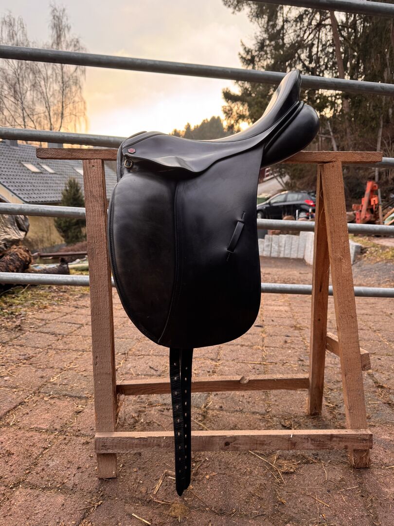 Dressursattel der Marke Albion. Vor Jahren habe ich zwei Gurtstupfen austauschen lassen.