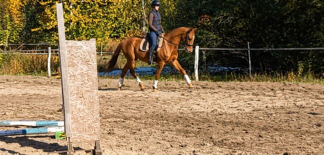 🐴 Geritten und kooperationswillig, schaut sich keine Gräben, Fundamente, Bretter und sonstigen Spuk an. Derzeit bis 80 cm gesprungen, in ständigem Training. Mit Potenzial für hohen Sport, eine große Chance für die diesjährigen polnischen Meisterschaften der jungen Pferde. Leicht zu reiten - geeignet für Kinder und Amateure.