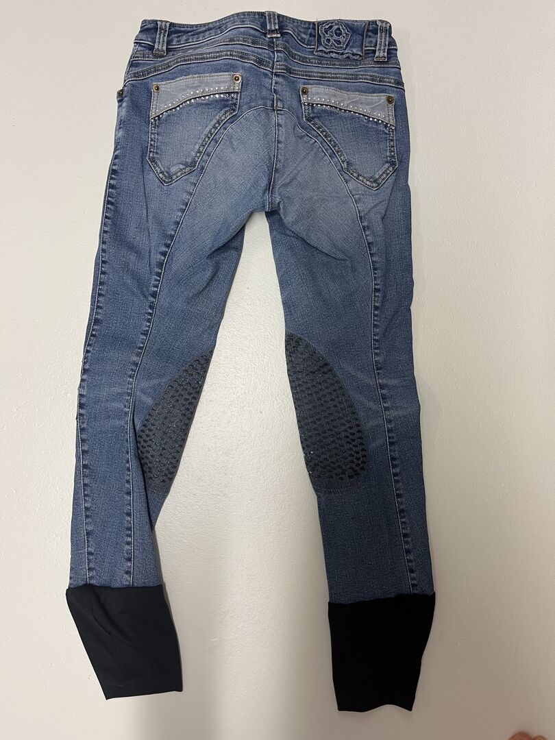 Ich verkaufe diese neuwertige Animo Damen Jeans Reithose mit Knie-Grip. Größe 32 Befindet sich in einem sehr guten Zustand! Grip Flächen unversehrt genauso wie alle Strasssteine an den Vor- und Hintertaschen