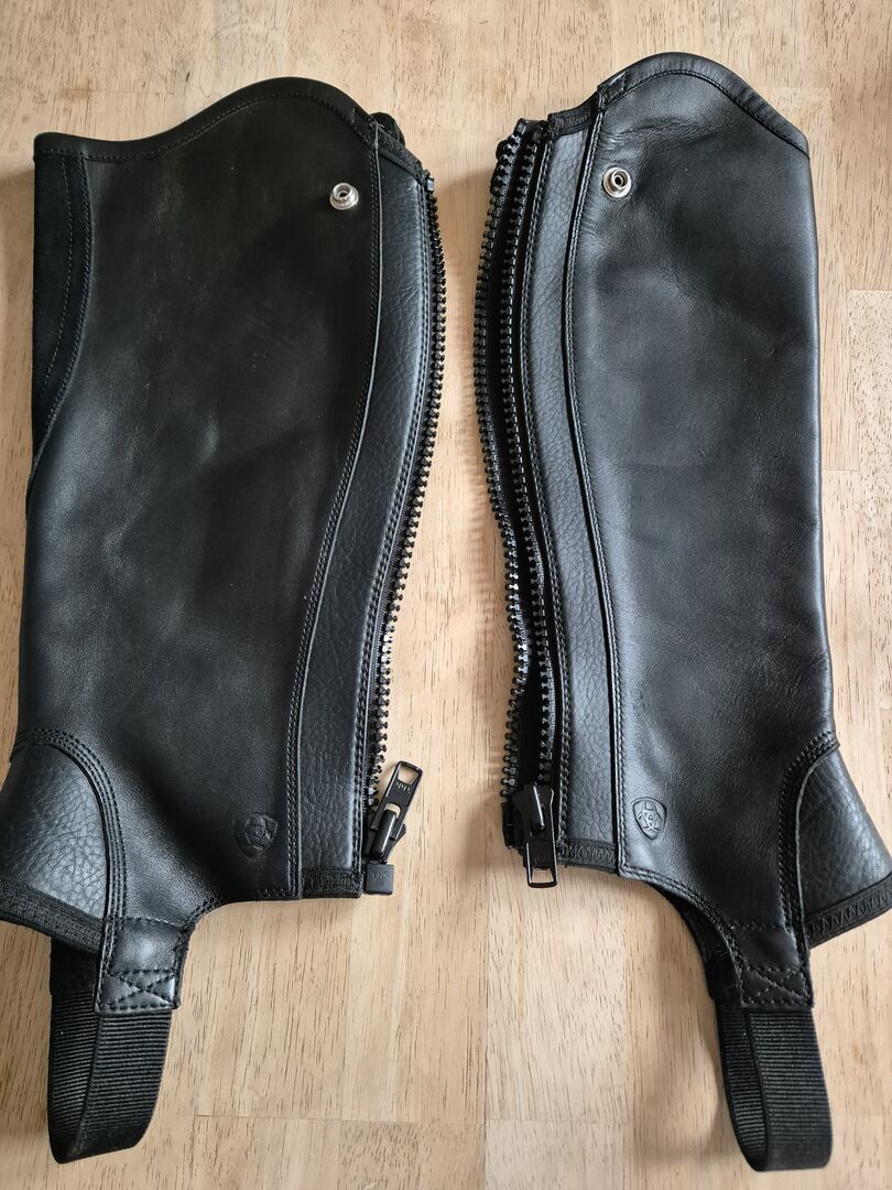 Zu Weihnachten gab es dann die langersehnten Stiefel, so dass Stiefeletten und Chaps für den Notfall ( falls mal ein Stiefel kaputt geht, man weiß ja nie ) beiseite gelegt wurden. Tja, nun ist dieser " Notfall " eingetreten uuuuund die Chaps passen nicht mehr, Kind ist halt doch gewachsen