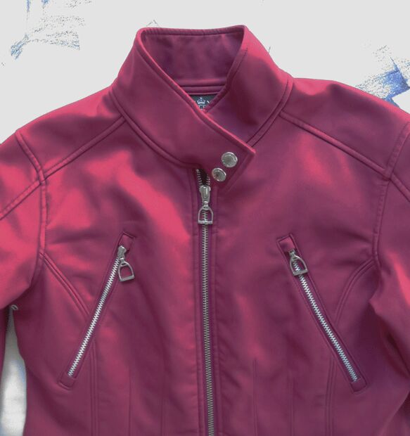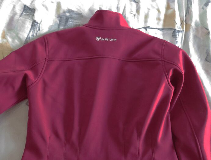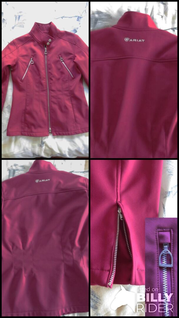 Tolle Jacke von Ariat für den Frühling in Farbe berry (nicht pink, kein greller Farbton!). Softshellmaterial, innen leicht mit Fleece angerauht - dünnere Stoffqualität, definitiv für den Frühling. Vorne ausser den 2 RV-Taschen noch 2 Eingriffstaschen. Viele schöne Details, siehe Bilder - ohne Mängel.