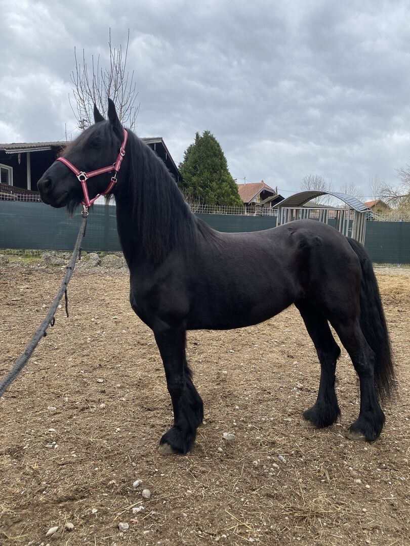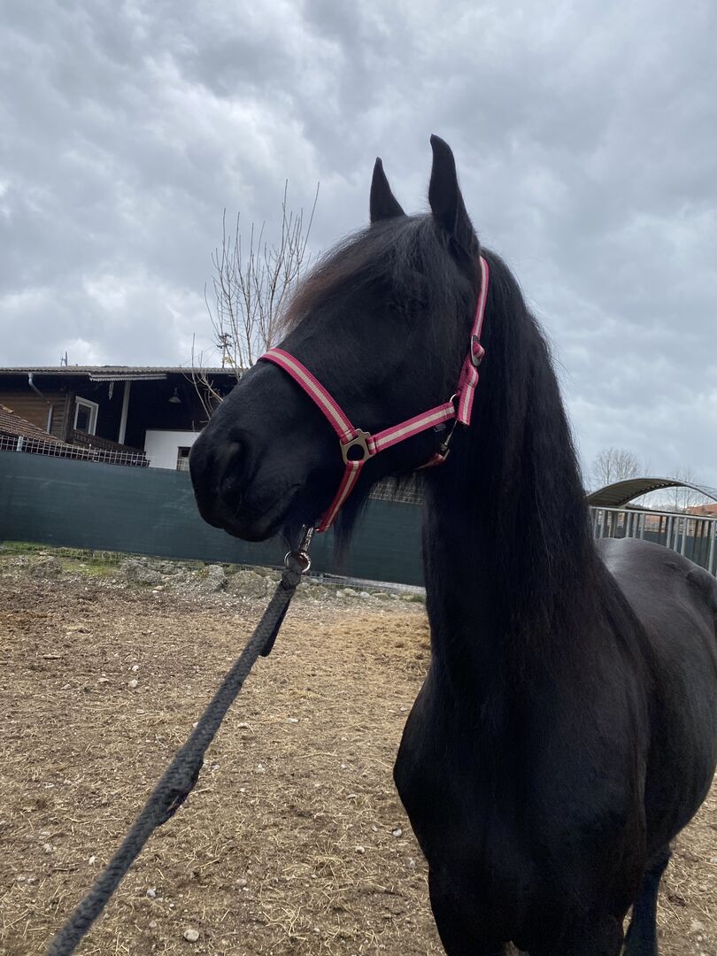Janina ist eine wunderschöne, elegante Stute mit viel Ausdruck und Charme. Sie ist noch roh, aber kennt den Hufschmied und zeigt sich dabei unproblematisch. Charakterlich ist sie aufmerksam, freundlich und neugierig. Sie ist ein selbstbewusstes Pferd.