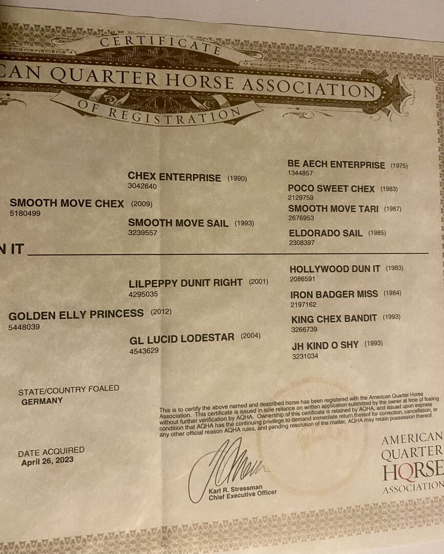 Der Wallach ist speziell für den großen Reining Sport geeignet und zeigt bereits viel Talent in dieser Disziplin. Er ist freundlich im Umgang, lernwillig und eignet sich sowohl für ambitionierte Reiter als auch für Einsteiger, die einen zuverlässigen Partner suchen.