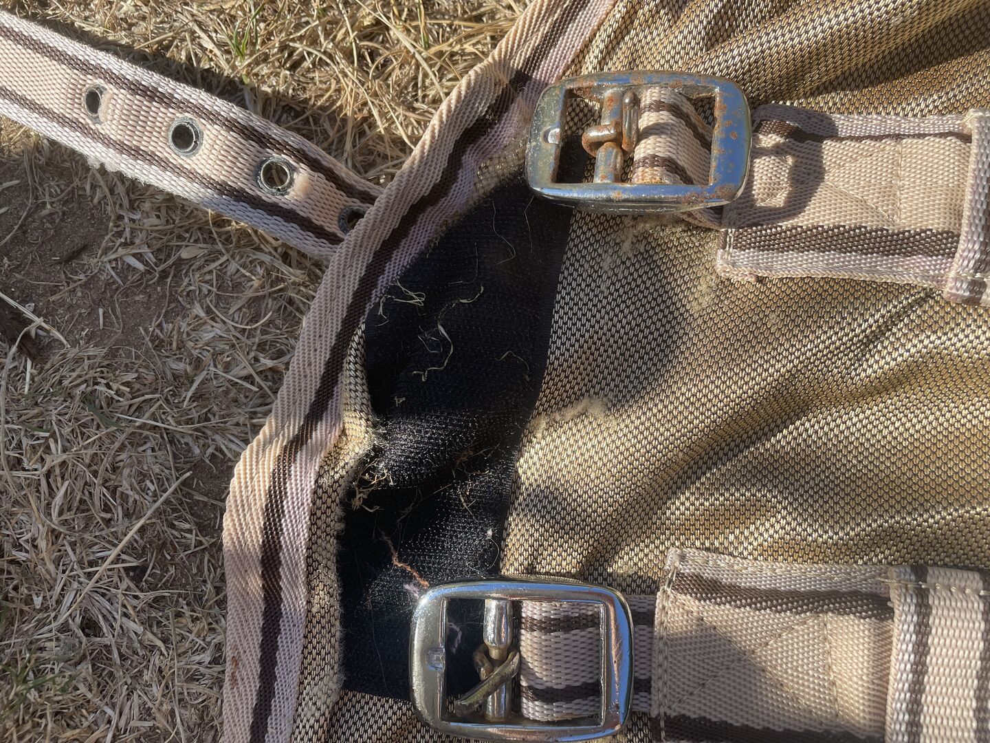 Decke mit leichtem Flugrost an den Schnallen und Verfärbungen. Aber noch voll funktionsfähig.