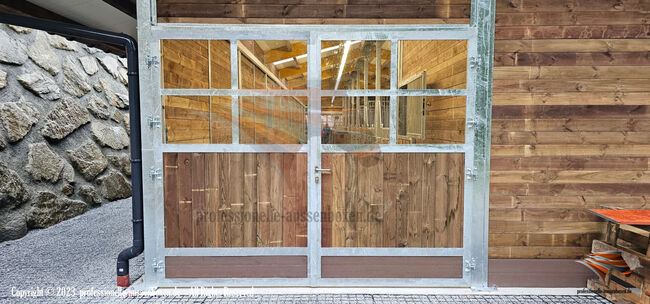 - Stalltüren mit separatem Türrahmen, verstärkter feuerverzinkter Stahlkonstruktion und Verbundsicherheitsglas im oberen Bereich