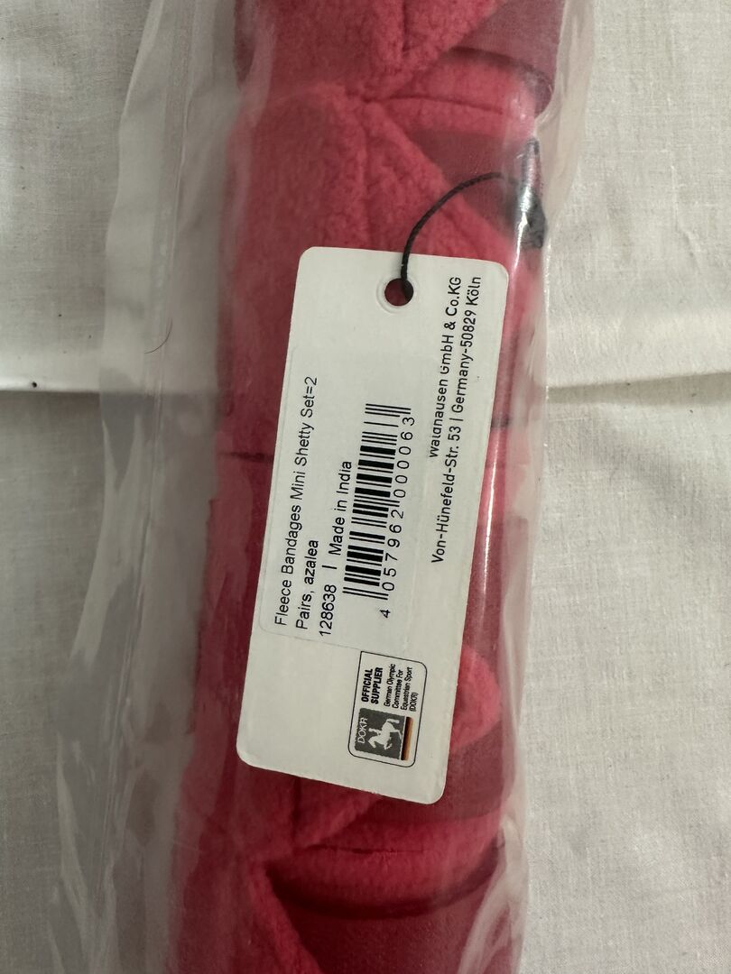 Neue Bandagen für Mini Shetty in Pink. Sie sind noch knalliger Pink als auf den Bildern.