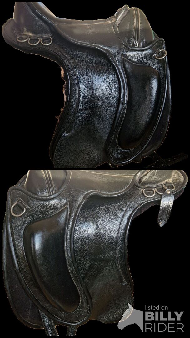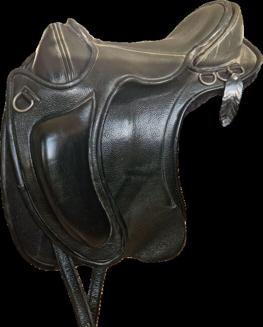 baumloser Sattel, beliebt im Distanz- und Vielseitigkeitsreiten, der durch anatomische Pauschen und eine freie Steigbügelaufhängung für tiefen Halt und eine optimale Gewichtsverteilung sorgt, indem er den Reiter nah am Schwerpunkt des Pferdes positioniert und Druck auf den Pferderücken minimiert. Er besteht aus Nubuck- oder Softleder (auch vegan erhältlich), hat eine flexible V-Gurtung und wird mit austauschbarem Zwiesel geliefert, was ihn anpassungsfähig macht und ein feines Reitgefühl ermöglicht.