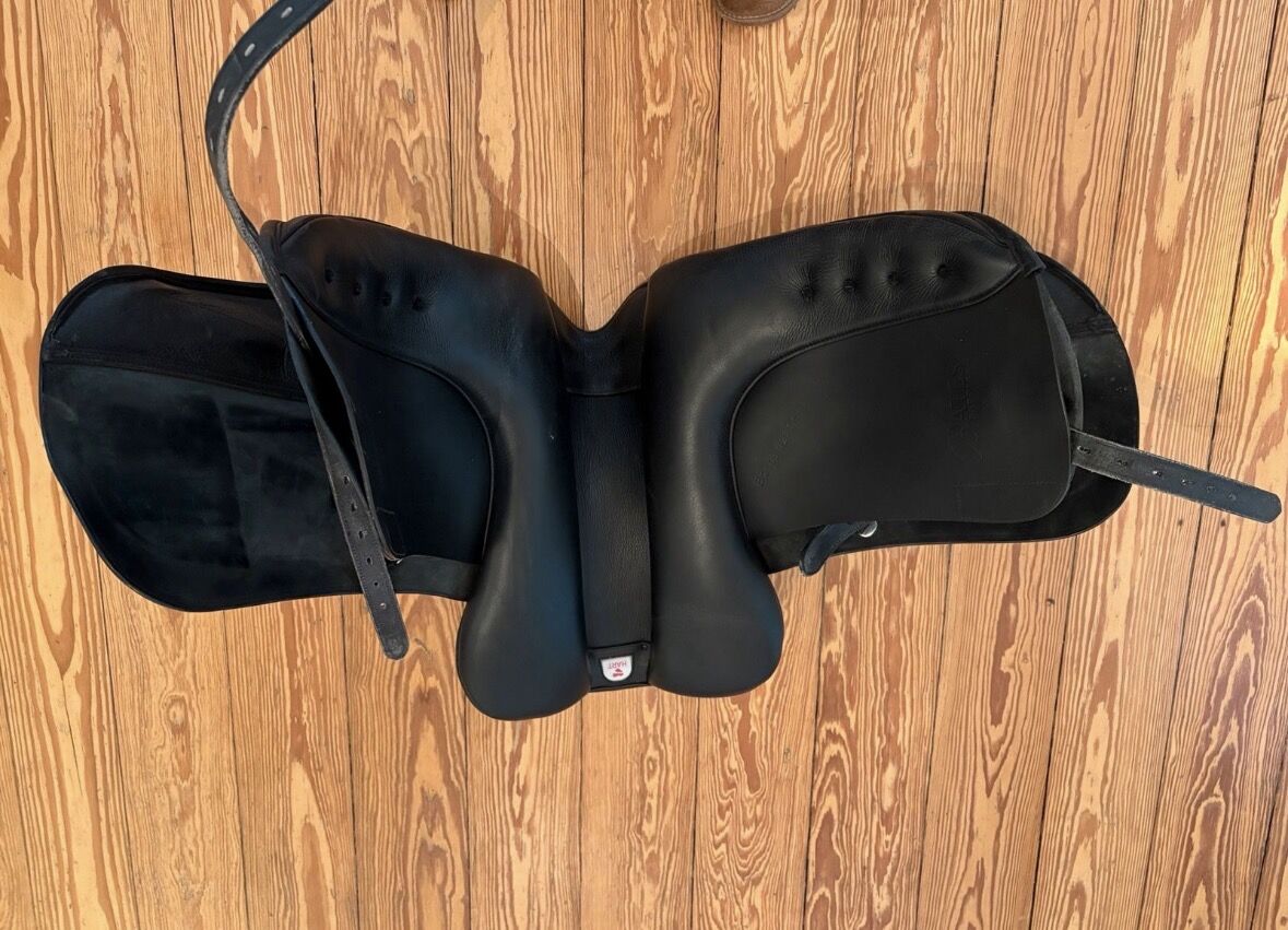 Bates Dressursattel schwarz 43 cm / 17 Gebraucht, selten benutzt, ca 4 Monate. Dann wegen Verkauf des Pferdes nicht mehr gebraucht. NP 1.988 Euro Rechnung vorhanden Ende 2022 gekauft.