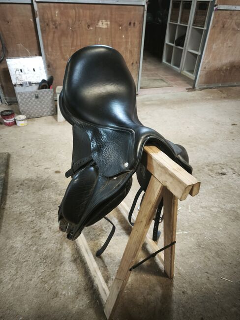 Benutzerdefinierte Gemini 17 - Geminis Custom-Sattel zu verkaufen, ungefähre Größe 17". Es ist in gutem Allgemeinzustand, komfortabel und funktional, ideal für das Training oder den täglichen Gebrauch.
