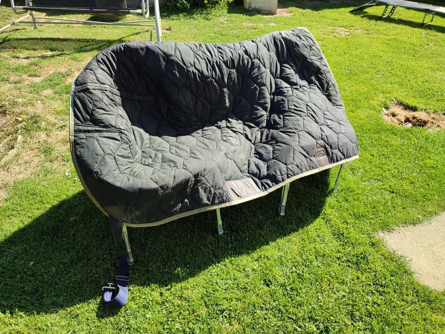 Gebrauchte Big D Stalldecke Size 76. Keine Löcher. Eine Beinschnüre wurde ausgetauscht. Alles intakt.