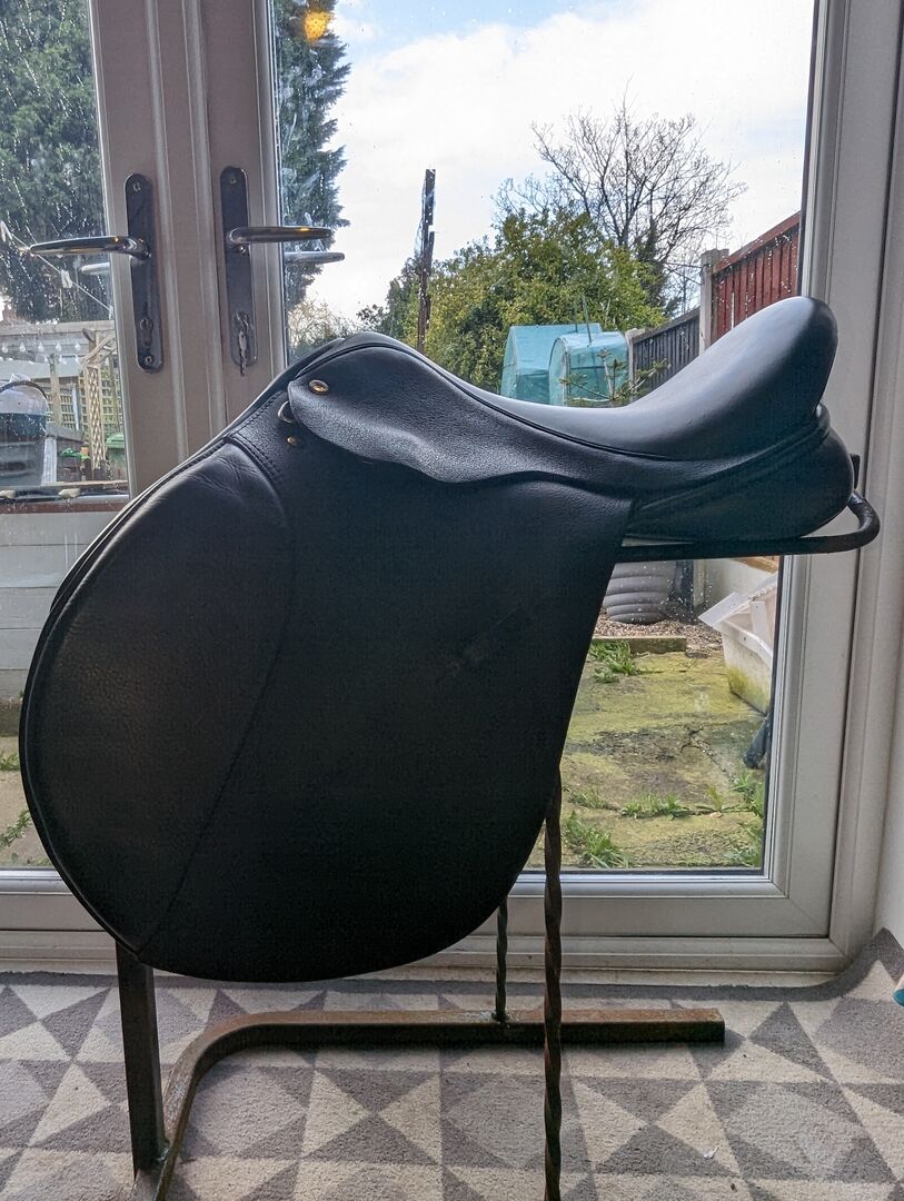 Schwarzes Land GPX 16,5" breite Passform in Havanna vintage braun. Wurde von meinem Sattler aus zweiter Hand für mich im Jahr 2020 gekauft. Es ist von einer Vorlage war MW wurde verbreitert, um mehr eine breite jetzt aber könnte wieder in genommen werden, wenn erforderlich. Es hat einen gefederten klassischen Baum. In sehr gutem Zustand für das Alter. Nur einige Goth Marks auf Bodenklappe, Bürsten von Steigbügelriemen und eine kleine Markierung auf der Paspel des Cantle .