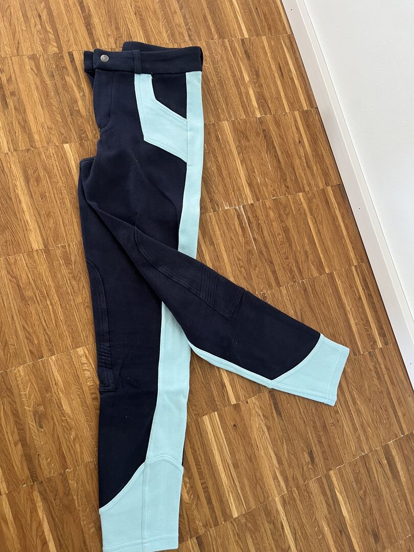 Sehr bequeme Reithose in dunkelblau mit hellblauen Details.