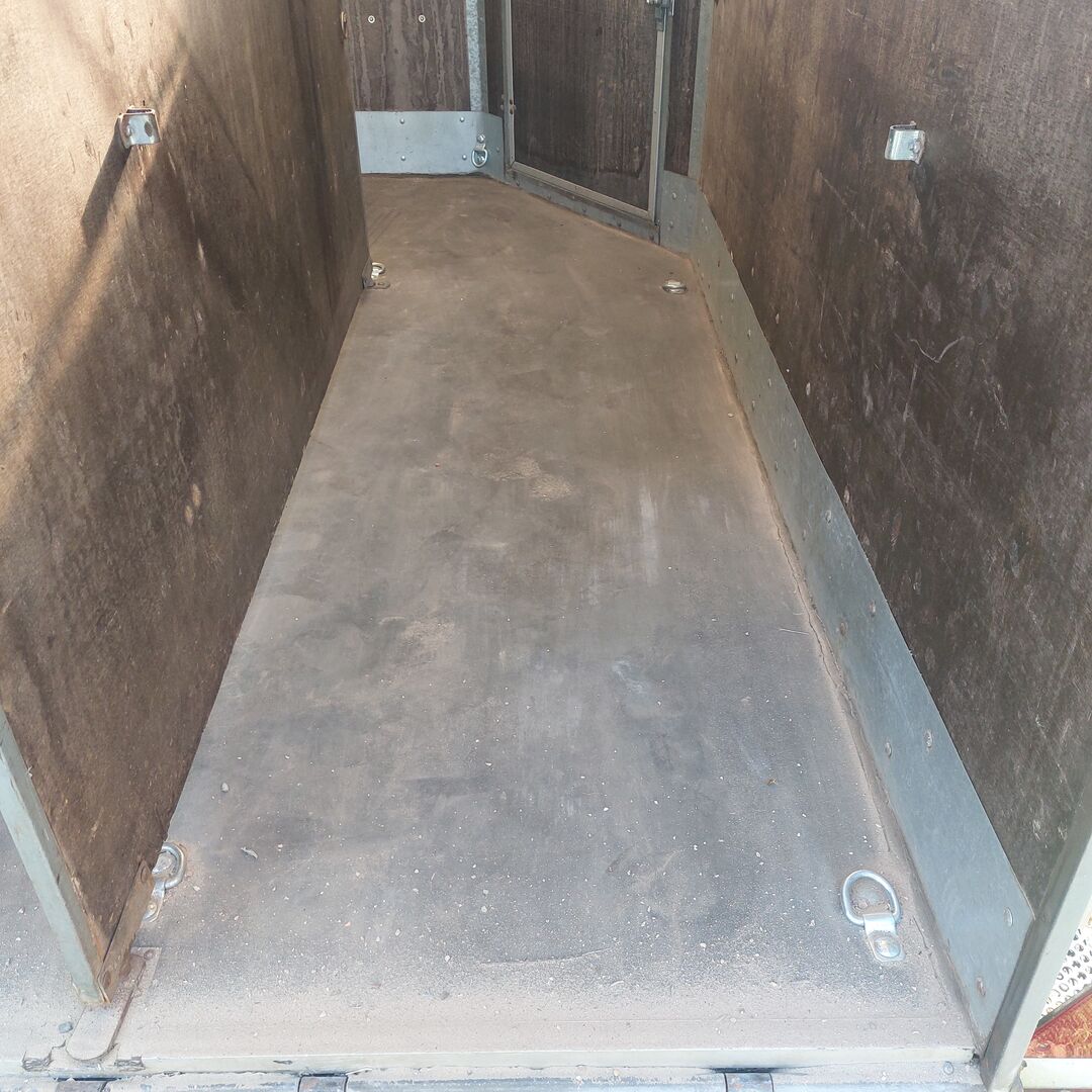 Extras, z. B. Ösen für den Transport von Motorrädern (Spanngurte können auch erworben werden), Seitenteilen mit Schnapp-Ösen für Umzüge, Extra- Aufnehmer auf beiden Seiten für den Transport von Shetlandponys, Extra Verstärkung an den Rändern für Trittschutz und ein Anbindehaken von außen.