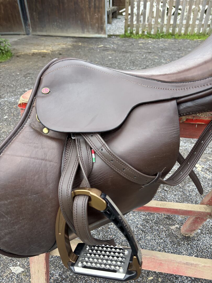 Ein brauner Sattel in perfektem Zustand 4 mal benutzt. Wir sind glücklich, Steigbügel, die neu sind, gehören
