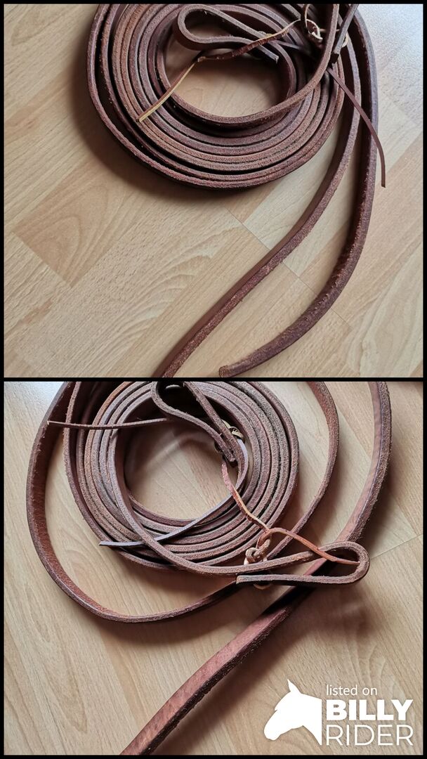 Verkaufe Arbeitssplitreins aus Harnessleder, ca. 1.9 cm breit, 2,30 cm. lang und 0,6 cm dick. Dicke Enden. Privatverkauf, keine Garantie, keine Rücknahme.