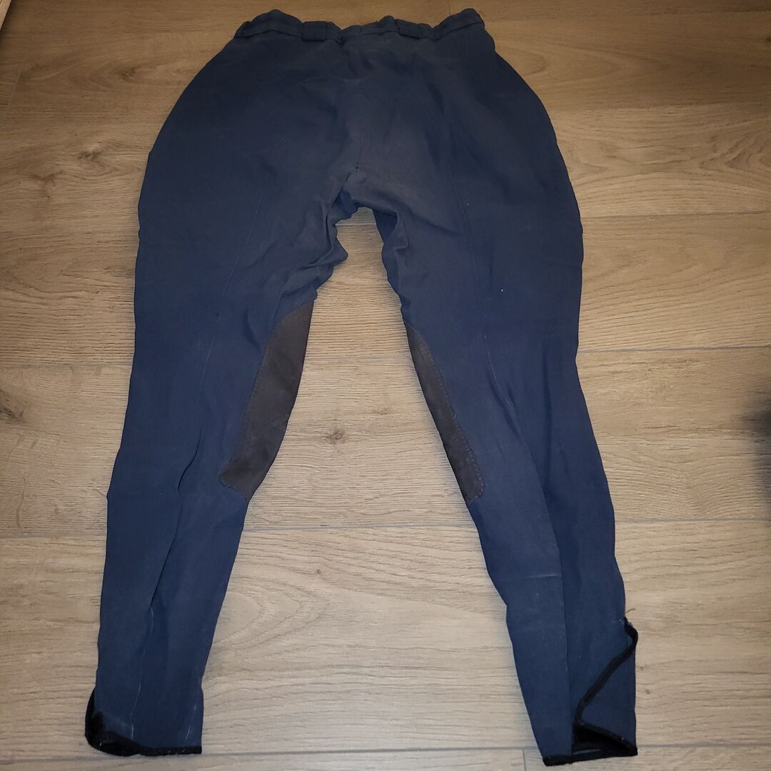 Ich verkaufe eine gebrauchte Damen Buntfalten Reithose von Pikeur in der Größe 88. Sie ist Blau mit blauem Knielederbesatz.