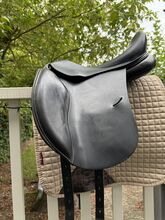 Busse Basel 17,5-Zoll-Leder-Dressursattel - Dressursattel aus Leder, bequem und mit einem gut ausbalancierten Sitz. Durch die kurzen Laschen und die abnehmbaren Wangen kann der Sattel auch zum Springen verwendet werden. Ich habe dies getan und mochte es sehr. Ich habe den Sattel im Jahr 2020 für 1800 Euro neu gekauft, bei meinem Sattler. Ich bin immer noch zufrieden mit dem Sattel, aber leider hat mein Pferd durch Krankheit viel Muskelmasse verloren, so dass der Sattel nicht mehr gut passt. Er ist bereits einen Tag älter und wird wahrscheinlich nicht mehr sein altes Niveau erreichen, weshalb ich diesen Sattel verkaufe. Der Sattel ist immer gut gepflegt worden. Er wurde nach dem letzten Einsatz vom DS-Sattelservice überprüft und für völlig in Ordnung befunden. Der Baum kann bei Bedarf in der Presse verstellt werden. Dies wurde jedoch bei diesem Sattel noch nie gemacht.
