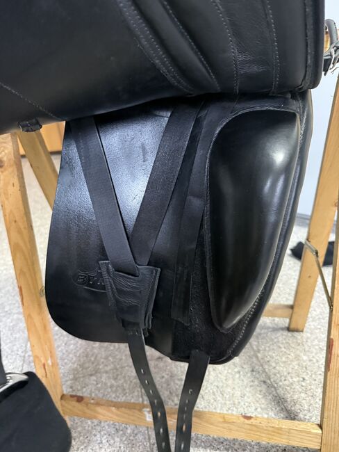 Ich biete meinen Bynamic Dressursattel in sehr gutem Zustand zum Verkauf an. Er wurde stets gepflegt. Der Sattel lag bei mir auf einer Stute mit kurzem Rücken, eignet sich jedoch auch sehr gut für Pferde mit mittlerem bis hohem Widerrist. Er verfügt über Klettpauschen, ein zweites Paar kleinerer Pauschen ist ebenfalls dabei, ebenso die originalen Steigbügelriemen. Ein Versand ist grundsätzlich möglich, die Kosten trägt der Käufer. Ein Versand zur Probe ist nicht möglich, jedoch kann ich den Sattel im näheren Umfeld gegen Übernahme der Spritkosten gerne vorbeibringen. Einen originalen Sattel Schoner von Bynamic kann ich auch noch dazu geben. Den müsste ich nur vorher noch waschen. Bei Fragen oder Interesse einfach melden.