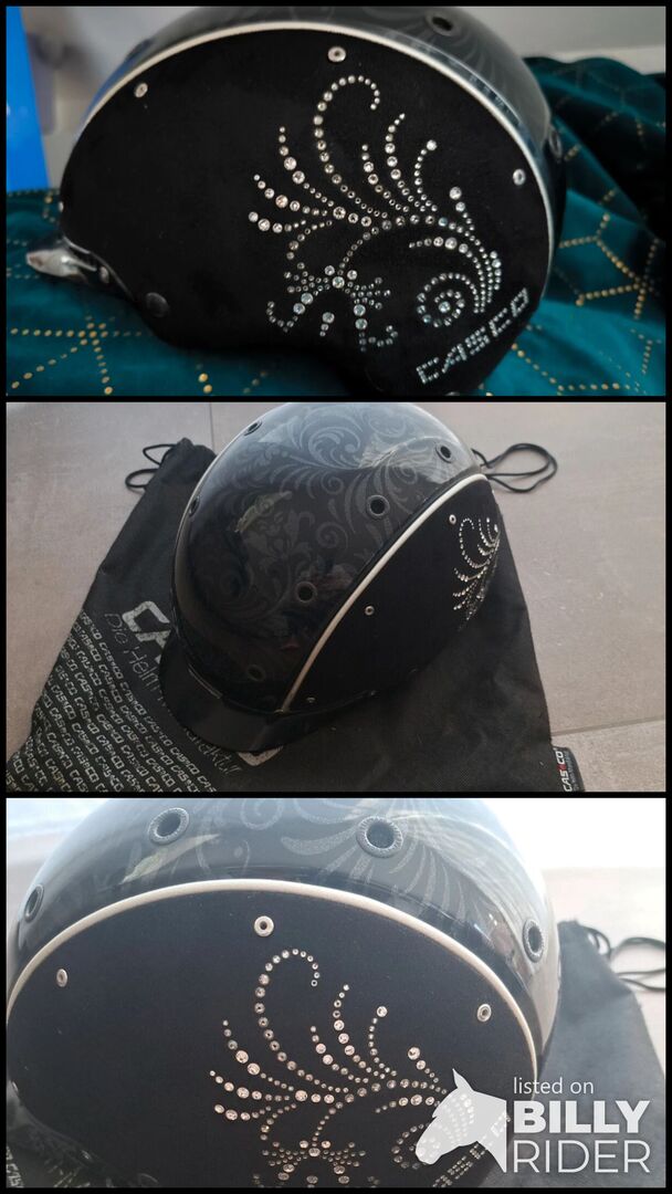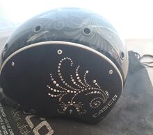 Wunderschöner leider selten getragener Helm da er mir leider nicht zu 100 Prozent passt. Er funkelt wunderschön und wurde Zuhause im Schrank bewahrt. Kein Sturz! Nichtraucherhaushalt.