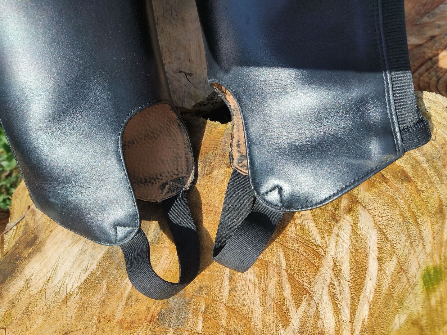 ich biete hier super-chice Chaps/Stiefelschäfte von Cavallo mit hohem Dressurbogen, welcher optisch ein schönes, langes Bein macht. Größenangabe ist "EH" bzw. 52/36 (Höhe/Weite). Neupreis: 169,90€