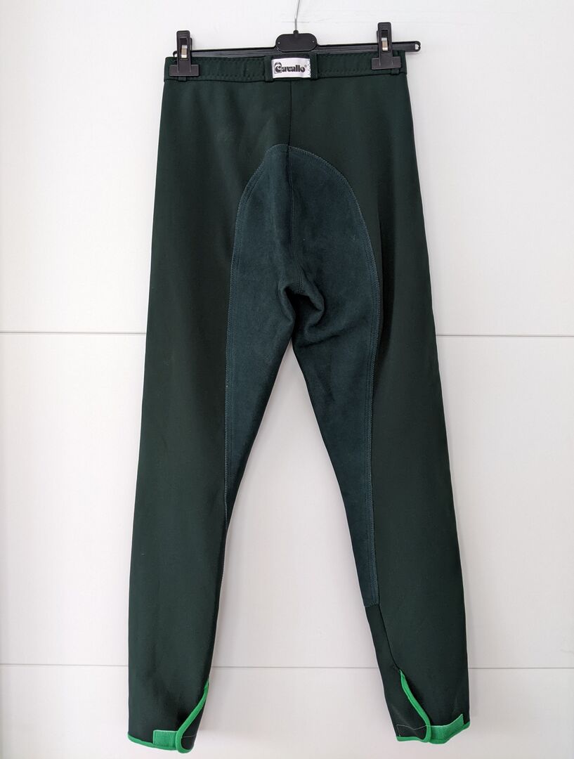 Verkaufe eine kaum getragene Cavallo Reithose in dunkelgrün mit Kunstwildleder-Vollbesatz. Sehr gepflegter Zustand, keine Schäden oder Abnutzung. Ideal für Freizeit oder Reitunterricht. Klassischer Schnitt mit Gürtelschlaufen und maschinenwaschbar.