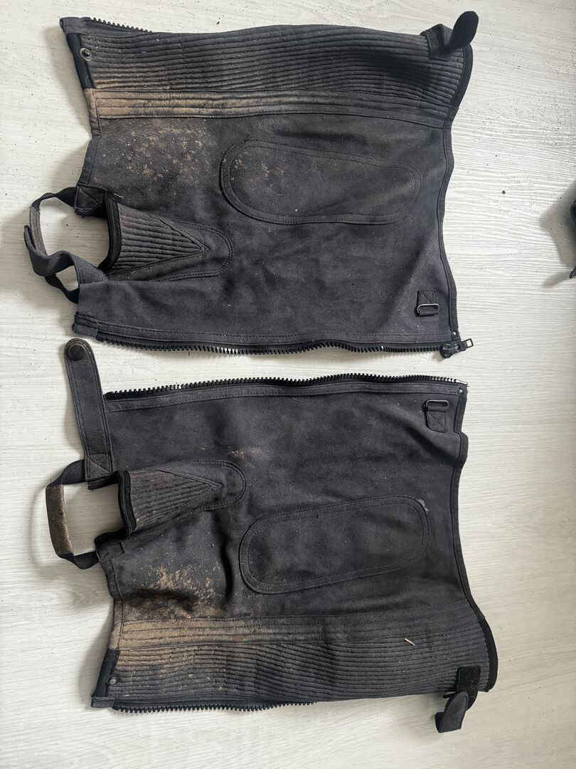 Chaps in Grau Gr. L 44/46 Müsste mal sauber gemacht werden, ansonsten super Zustand. Maße können den Bildern entnommen werden. Privatverkauf daher keine Garantie oder Rücknahme. Versand gegen Kostenübernahme möglich.
