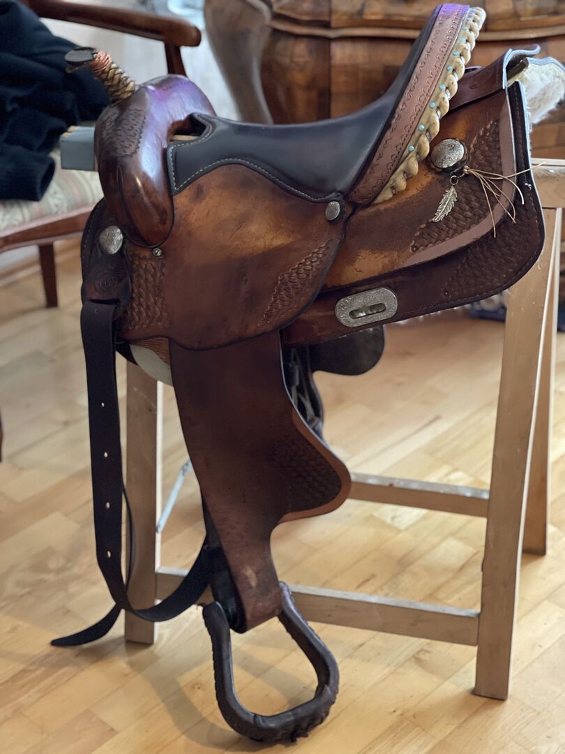 Ich verkaufe hier meinen Continental Westernsattel, leider passt er meinem Pferd nicht mehr, sonst würd ich ihn nicht verkaufen, er ist superbequem, sauber und gepflegt, er wurde immer trocken gelagert. Aufgrund seines Alters weist er die eine oder andere Gebrauchsspur auf, ist aber voll funktionsfähig… leider ist am Horn das Leder etwas weg…