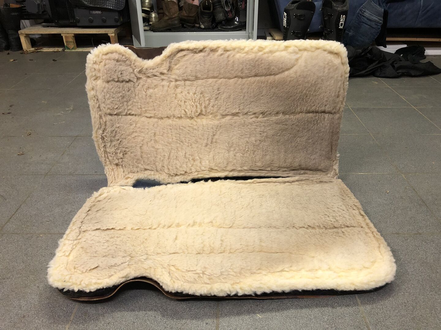 Verkaufe Western Correction Pad, vorne an der Schulter aufgepolstert um fehlende Muskulatur auszugleichen (perfekt für Senioren/ Jungpferde/ Wiederaufbau). Es ist ein sehr hochwertiges Pad mit Filz-Oberseite, Fleece-Unterseite und Cut-Outs im Leder für besseren Beinkontakt. Länge 30 inch (76cm) und ca 1 inch dick (2,6cm). Ich habe es als Mustang Saddlery Correction Pad Barrel mit Fleece Lining gekauft. Es ähnelt auch dem BioFit von Classic Equine oder dem orthoride correction Pad von Southwestern Equine. Das Fleece ist noch schön fluffig und nicht verklebt, lediglich stellenweise ein wenig verfärbt.
