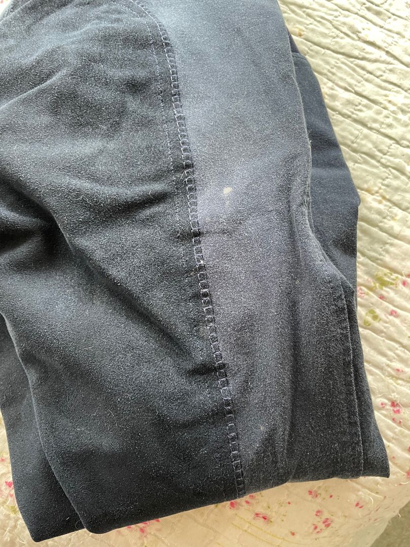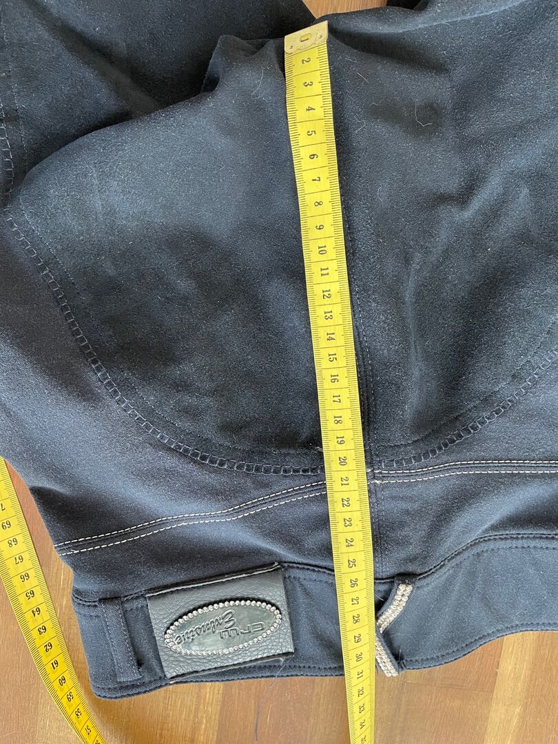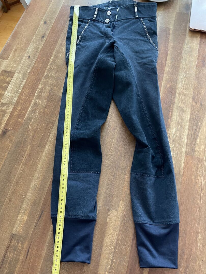 Meine Tochter wächst, und daher passen ihr die Reithosen vom letzten Jahr nicht mehr. Die Hosen wurden alle mit einer Körpergröße von 165 cm getragen. Die hier angebotene Hose weist im Bereich der Strasssteine kleine Fehler auf, und sie hat einen kleinen Fleck neben dem Besatz (s. Fotos). Ansonsten ist sie in sehr gutem Zustand. Die Farbe ist nicht wirklich gut bei den Fotos getroffen, das Blau ist deutlich satter und dunkler. Vielleicht findet sich hier eine neue Trägerin für die Hose.