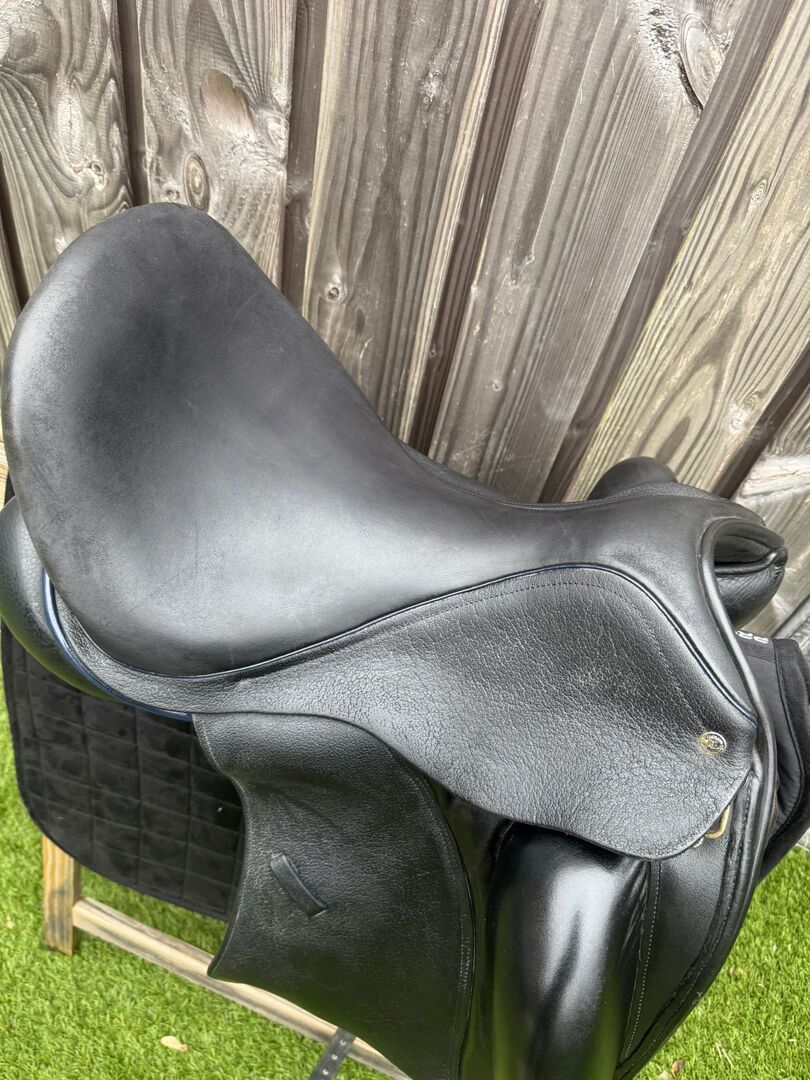 Wir bieten einen Custom Gemini R in 17 Zoll an, einen wirklich auffälligen Sattel mit wunderschönen blauen Lacklederdetails und Swarovski-Kristallen am Efter. Der Sattel ist in sehr gutem Zustand und verbindet Eleganz mit höchster Handwerkskunst.