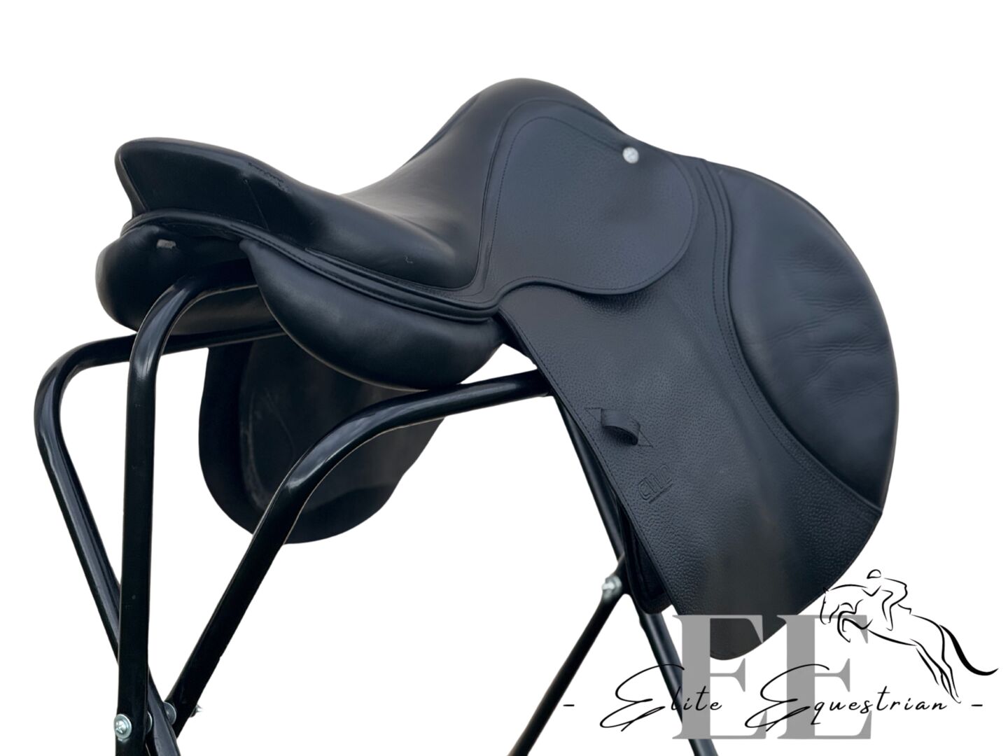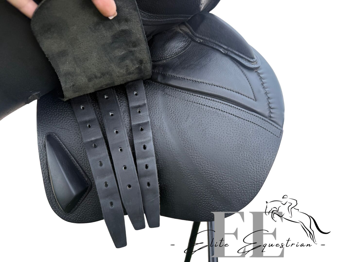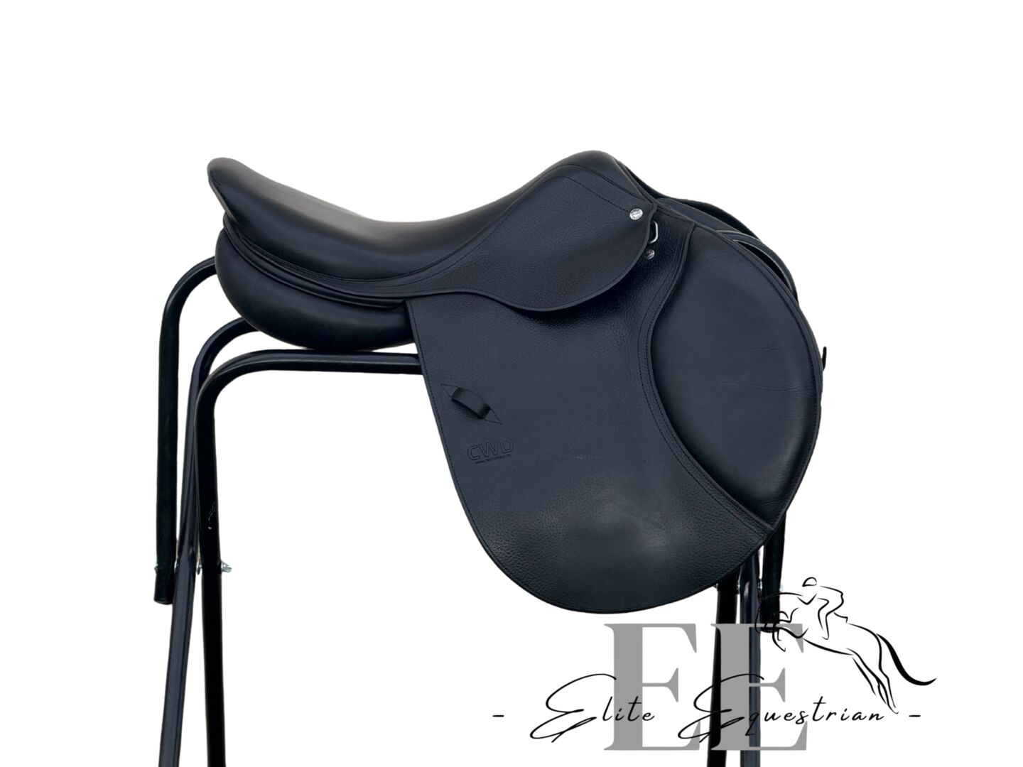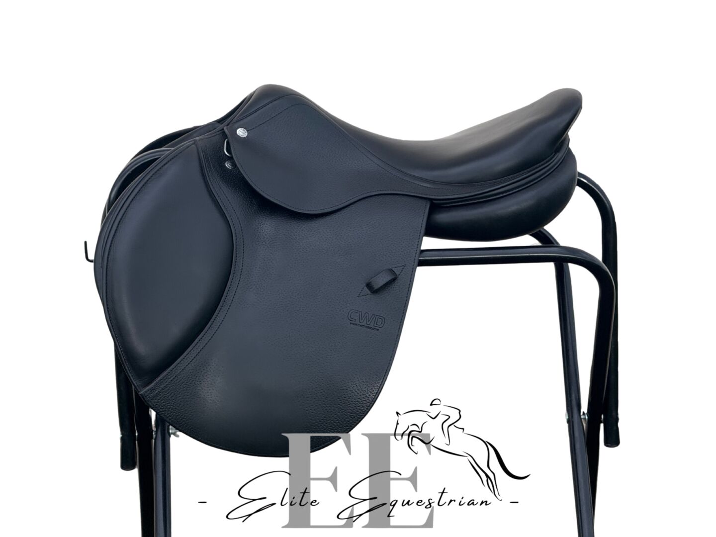 CWD SE02 Springsattel 17,5" - Der CWD SE02 ist ein hochwertiger französischer Springsattel, der speziell für leistungsorientierte Springpferde entwickelt wurde. Sein tiefer Sitz sorgt für hervorragende Stabilität, während das hochwertige französische Kalbsleder maximalen Komfort und Haltbarkeit bietet. Die anatomisch geformten Knie- und Wadenpauschen unterstützen eine präzise und sichere Reitposition, während das innovative Kissen-System für eine optimale Druckverteilung und Bewegungsfreiheit des Pferderückens sorgt.