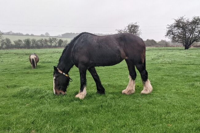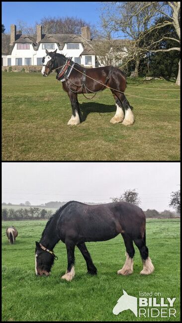 Theia" wurde vollständig im Fahren ausgebildet und den ganzen Sommer über täglich gearbeitet. Sie reitet gut. Schöne reife Persönlichkeit, lohnender Arbeitspartner. Lernt schnell. Erstaunlich im Verkehr. Hat im Sommer über 300 Meilen auf der Straße zurückgelegt. Wirklich kinderfreundlich. Ein wahrer sanfter Riese. Hat mit Schafen, Ponys und Hunden gelebt und ist geduldig mit allen. Lädt ohne Aufhebens, reist allein oder in Gesellschaft. Steht für den Hufschmied zum Trimmen und Beschlagen bereit. War letzten Winter sehr robust. Wird mit Reit-, Pflug- und Zuggeschirr geliefert. Sie hat ihre eigenen maßgeschneiderten Schäfte (offen für Verhandlungen). Ein seltenes, talentiertes und geschicktes Pferd.