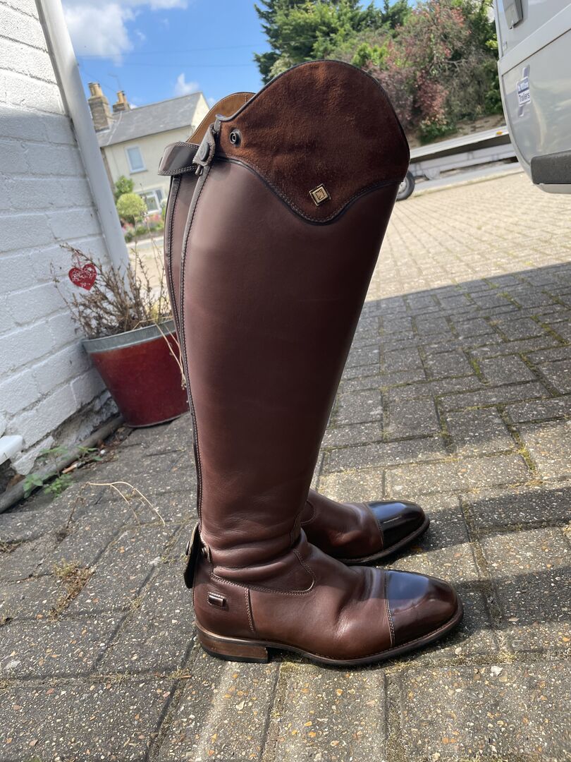 Meine schönen De Niro Stiefel stehen zum Verkauf, weil ich sie einfach nicht genug trage! Max Verschleiß etwa zehn Mal, seit ich sie hatte, atemberaubend und wunderschön, aber in der Dressur konkurrieren jetzt nur so auf schwarz umgestellt. Schöne Wildleder Finish an der Spitze und Patent auf der Zehe. Sie sind wirklich wunderschön, Messungen Bilder.
