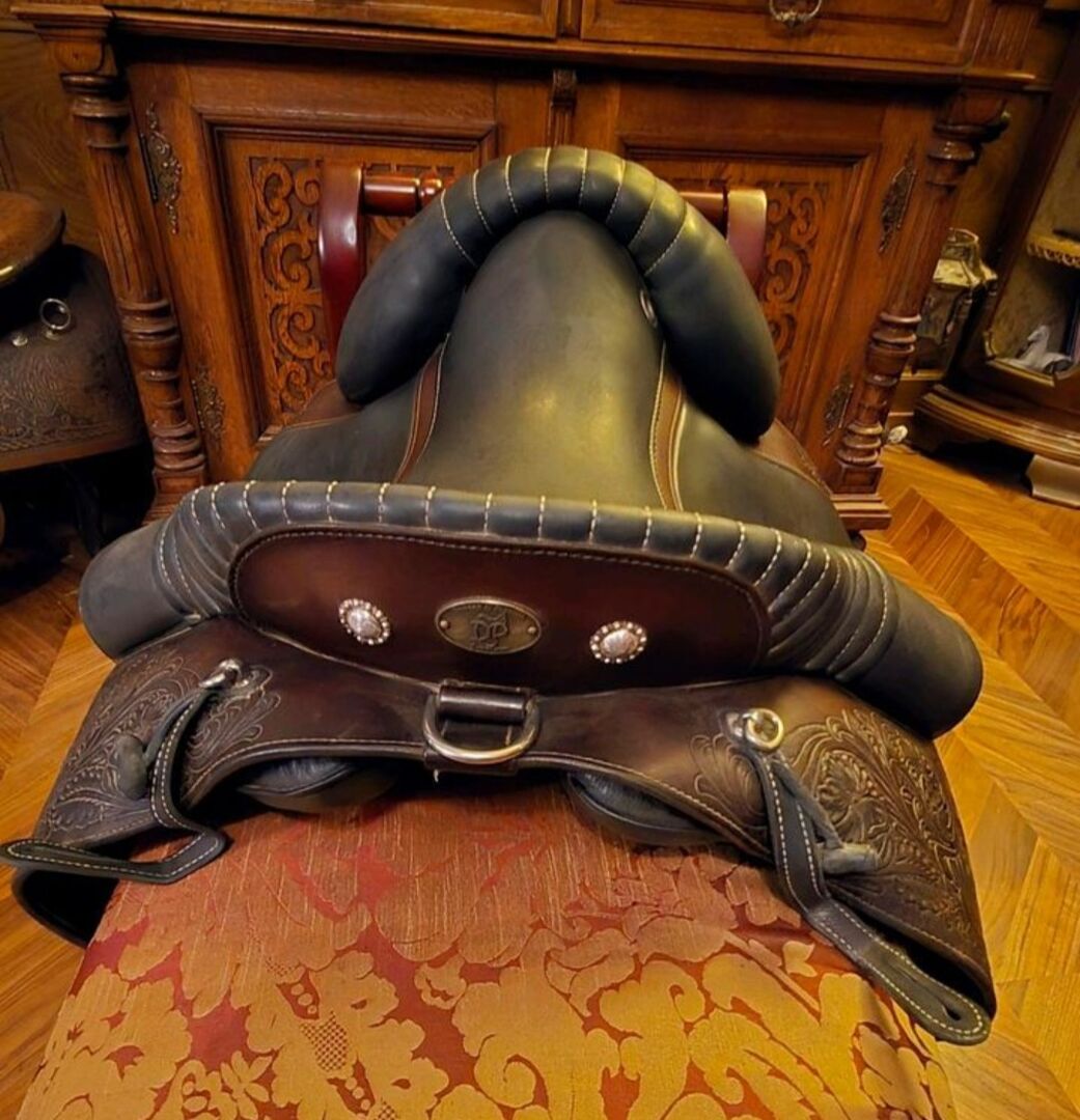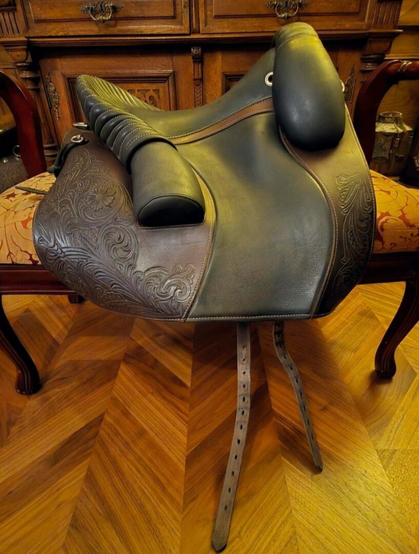 Dieser Sattel ist ein Nachbau des Bückeburg Schulsattel. Das Original von 1700 kann man im Marstall Museum der Hofreitschule Bückeburg bewundern. Somit eignet sich der Sattel perfekt für historische Darstellungen. Wie man sieht habe ich ihn häufig für Shows und Shootings verwendet.