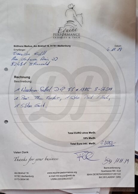 Neu am 04.11.2019 vom Händler gekauft (Rechnung vorhanden). Extra lange Fender (78 cm)