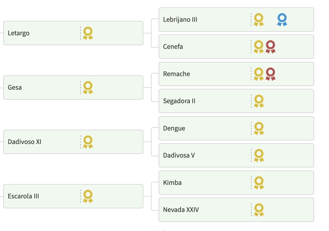 Sein Stammbaum führt hauptsächlich auf Yeguada Militar (Staatsgestütslinien) zurück, sein berühmter Vater Urgente XII wurde zum „Reproductor Recomendado“ gekört. Dragon ist eher der moderne Typ PRE mit sehr raumgreifenden Gängen und einem durch und durch stimmigen Gebäude.